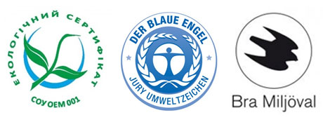 Ці знаки підтверджують, що маркована будь-яким з цих знаків продукція пройшла екологічну сертифікацію згідно вимог міжнародного стандарту ISO 14024 і має покращенні екологічні характеристики в порівнянні з представленою на ринку продукцією в аналогічній категорії.